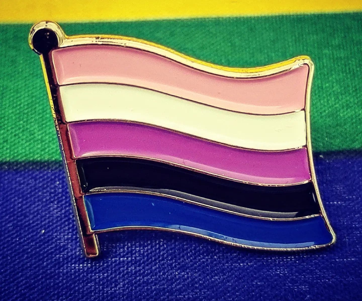Home / Badges / Pride Badges Product Description Item Details: Enamel Pin Badge with Clasp New and Sealed In Stock & Fast Dispatch Delivery & Returns All Orders Dispatched Within 1 - 2 working days.Variety of Delivery Options Available at Checkout. Genderfluid Flag Enamel Pin Badge Genderfluid Flag Enamel Pin Badge - LGBTQ+ Gay Pride Lapel Lesbian Rainbow £4.99